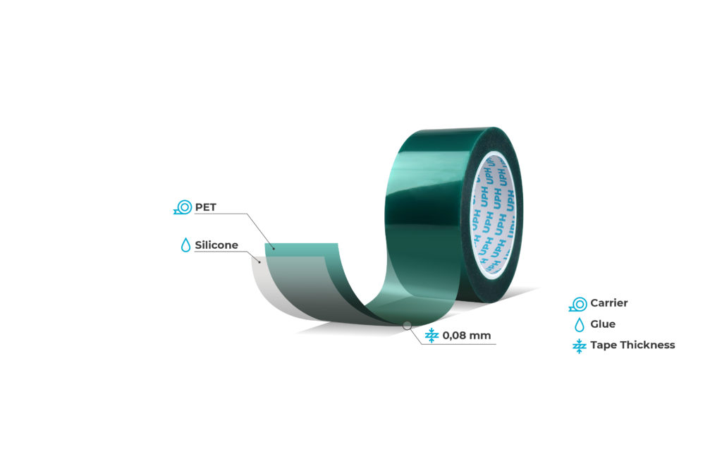 masking of surfaces with powder coating; fixing elements; protection of delicate surfaces during transportation; splicing of siliconized surfaces